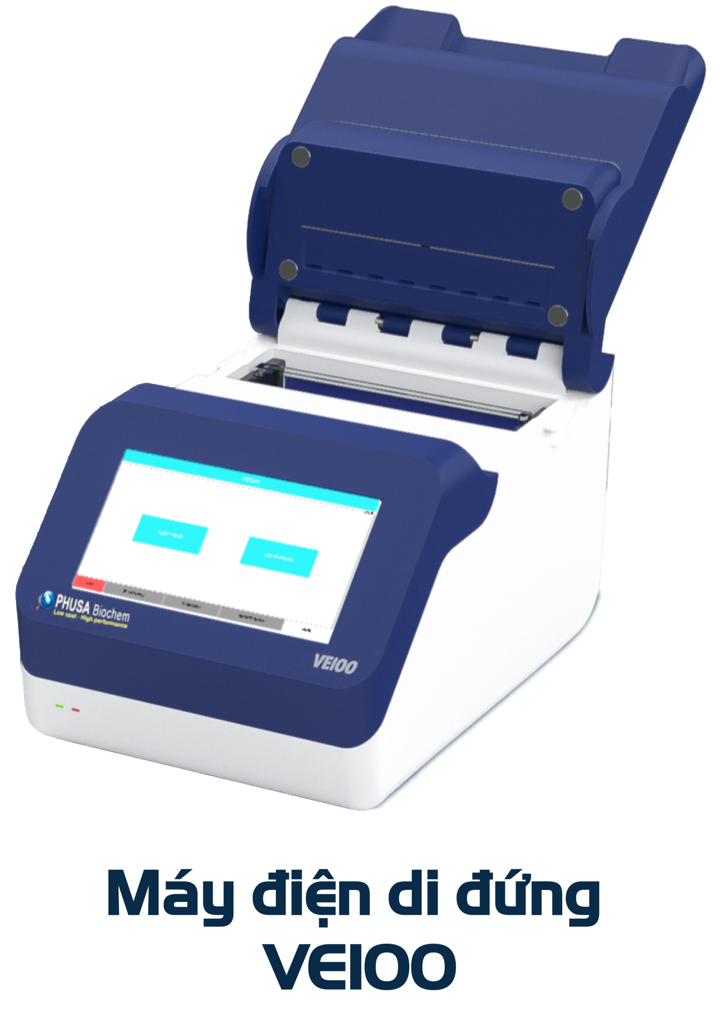 VE100 là hệ thống điện di DNA tích hợp "tất cả trong một", với nguồn điện, buồng điện cực và bộ xử lý hình ảnh được tích hợp trong một thiết bị duy nhất.